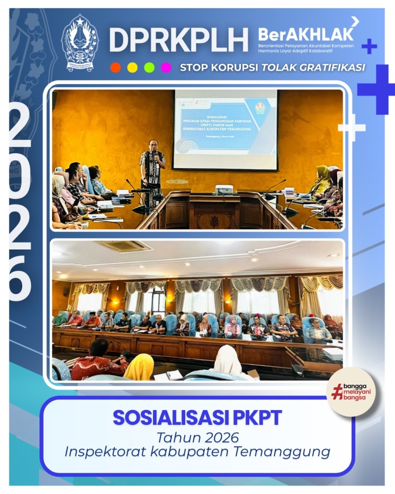 Berita Kategori: Smart Government (Pemerintah Cerdas) UPT Selasa, 03/03/2026 16:21 1 verifikasi metode uji TDS dan TSS Oleh UPT Laboratorium Lingkungan DPRKPLH Kab. Temanggung Selengkapnya Kategori: Smart Government (Pemerintah Cerdas) UPT Selasa, 03/03/2026 16:19 0 Verifikasi Metode Uji TDS Oleh Laboratorium Lingkungan Selengkapnya Kategori: Smart Government (Pemerintah Cerdas) UPT Selasa, 03/03/2026 16:17 1 Preparasi Kertas Saring UPT Laboratorium Lingkungan Selengkapnya Kategori: Smart Government (Pemerintah Cerdas) Sekretariat Selasa, 03/03/2026 16:05 1 DPRKPLH KAB. TEMANGGUNG MENGIKUTI SOSIALISASI PROGRAM KERJA PENGAWASAN TAHUNAN (PKPT) TAHUN 2026 Selengkapnya Kategori: Smart Government (Pemerintah Cerdas) UPT Selasa, 03/03/2026 15:48 0 Petugas Operator TPA-IPLT Sanggrahan Memberikan Pelayanan Penyedotan Lumpur Tinja Selengkapnya Kategori: Smart Government (Pemerintah Cerdas) Sekretariat Selasa, 03/03/2026 15:46 0 Petugas Kebersihan UPT TPA-IPLT Selengkapnya Kategori: Smart Government (Pemerintah Cerdas) UPT Selasa, 03/03/2026 15:43 0 Pemberian MOU dan SOP Pelayanan Penyedotan Tinja Selengkapnya Kategori: Smart Government (Pemerintah Cerdas) UPT Selasa, 03/03/2026 15:38 0 Pemangkasan Pohon oleh DPRKPLH Kabupaten Temanggung Selengkapnya Kategori: Smart Government (Pemerintah Cerdas) UPT Selasa, 03/03/2026 15:36 0 Pemangkasan Dahan Pohon Beringin Alun-Alun Temanggung Selengkapnya Kategori: Smart Government (Pemerintah Cerdas) UPT Selasa, 03/03/2026 15:35 0 Perbaikan Sarpras di Rusunawa Parakan Kauman Selengkapnya Kategori: Smart Government (Pemerintah Cerdas) Bidang Perumahan Rakyat dan Kawasan Permukiman Selasa, 03/03/2026 15:30 0 Pendampingan dan Pengarahan Terkait Proposal Inovasi Perangkat Daerah Pada DPRPKLH Kab. Temanggung Selengkapnya Kategori: Smart Government (Pemerintah Cerdas) Bidang Perumahan Rakyat dan Kawasan Permukiman Selasa, 03/03/2026 14:08 0 Pemberian Informasi Tentang RTLH ke Perangkat Desa Selengkapnya 123NextLast