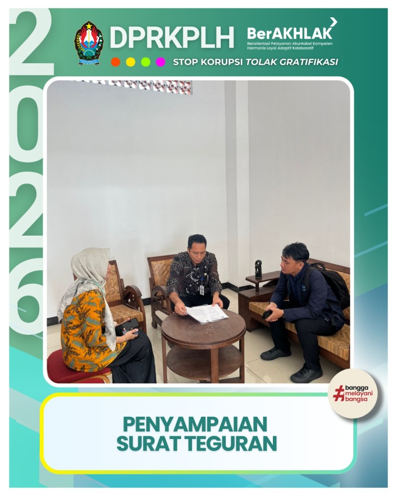 Berita Kategori: Smart Government (Pemerintah Cerdas) Sekretariat Rabu, 22/04/2026 18:45 0 Kuliah Umum Spesial Universitas Diponegoro Semarang Bersama Kepala DPRKPLH Kabupaten Temanggung. Selengkapnya Kategori: Smart Government (Pemerintah Cerdas) UPT Selasa, 21/04/2026 21:39 0 Langkah Awal Uji Udara: Membuat Standar Pembacaan Oksidan Selengkapnya Kategori: Smart Government (Pemerintah Cerdas) Bidang Pengendalian Pencemaran dan Kerusakan Lingkungan Hidup Selasa, 21/04/2026 21:13 0 Pohon Elo: Sahabat Air dan Penjaga Kelestarian Sungai Selengkapnya Kategori: Smart Government (Pemerintah Cerdas) Bidang Pengendalian Pencemaran dan Kerusakan Lingkungan Hidup Selasa, 21/04/2026 21:07 0 Perawatan Tanaman di Tempat Penampungan Bibit Konservasi DPRKPLH di Rest Area Kledung Selengkapnya Kategori: Smart Government (Pemerintah Cerdas) Bidang Pengendalian Pencemaran dan Kerusakan Lingkungan Hidup Selasa, 21/04/2026 21:03 0 Tindak Lanjut Hasil Pengawasan Lingkungan: Teguran Tertulis bagi Mie Gacoan Selengkapnya Kategori: Smart Government (Pemerintah Cerdas) UPT Selasa, 21/04/2026 20:46 0 Validasi Kurva Kalibrasi Nitrogen Dioksida UPT Laboratorium Lingkungan DPRKPLH Temanggung Selengkapnya Kategori: Smart Government (Pemerintah Cerdas) UPT Selasa, 21/04/2026 20:44 0 Penandatanganan MOU Sinergi Pengelolaan Sampah dengan Pengepul Rosok TPA Sanggrahan Temaanggung Selengkapnya Kategori: Smart Government (Pemerintah Cerdas) UPT Selasa, 21/04/2026 20:43 0 Pembersihan kolam Setling Pond di TPA-IPLT Sanggrahan Selengkapnya Kategori: Smart Government (Pemerintah Cerdas) UPT Selasa, 21/04/2026 20:30 0 Preparasi Kertas Saring HVAS di UPT Laboratorium Lingkungan DPRKPLH Temanggung Selengkapnya Kategori: Smart Government (Pemerintah Cerdas) UPT Selasa, 21/04/2026 20:28 0 Pemeliharaan Rutin Fasilitas dan Infrastruktur Rusunawa di Kabupaten Temanggung Selengkapnya Kategori: Smart Government (Pemerintah Cerdas) UPT Selasa, 21/04/2026 19:42 0 Sinkronisasi Data Calon Pemohon Rusunawa Melalui Verifikasi Desa Selengkapnya Kategori: Smart Government (Pemerintah Cerdas) UPT Selasa, 21/04/2026 19:30 0 Optimalisasi Pelayanan Informasi Publik Bagi Calon Penghuni Rusunawa di Temanggung Selengkapnya 123NextLast