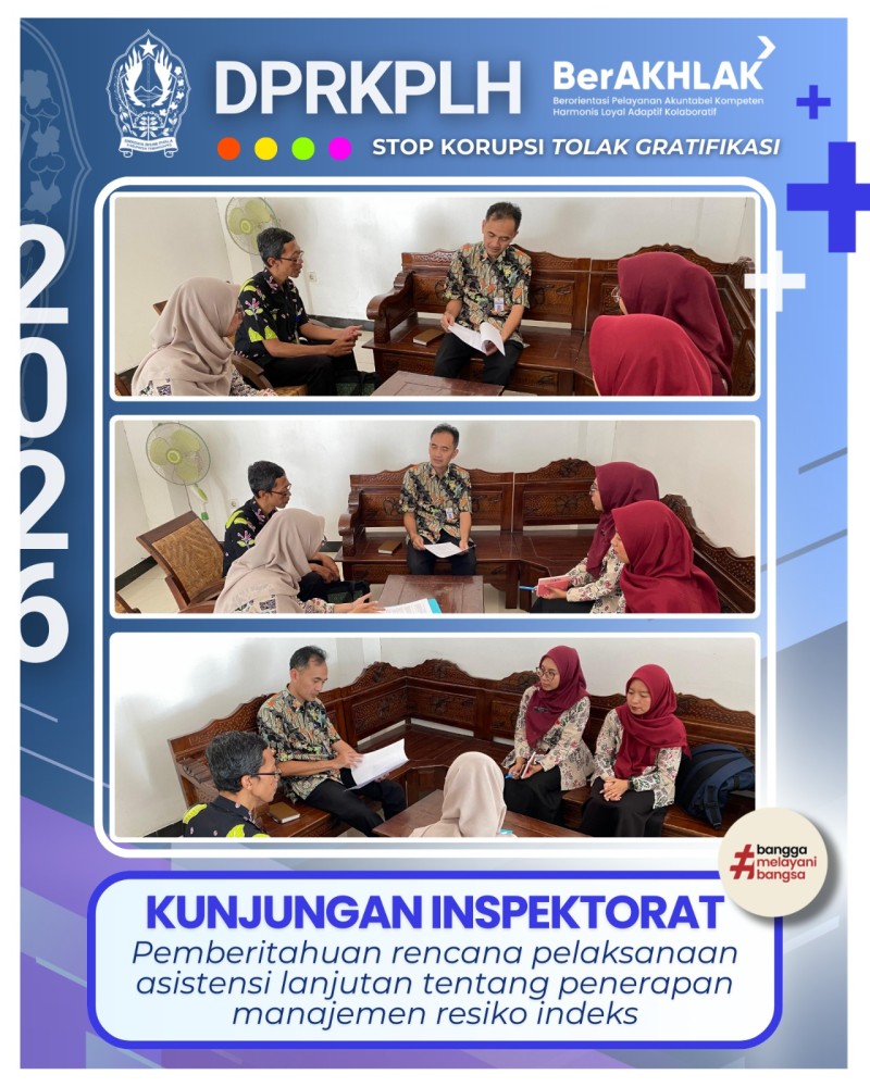 Berita Kategori: Smart Government (Pemerintah Cerdas) Bidang Pengendalian Pencemaran dan Kerusakan Lingkungan Hidup Kamis, 05/03/2026 16:09 0 Update Pemantauan Kualitas Air di Pos Stasiun ONLIMO 133 – Catgawen Parakan Temanggung Selengkapnya Kategori: Smart Government (Pemerintah Cerdas) Bidang Pengendalian Pencemaran dan Kerusakan Lingkungan Hidup Kamis, 05/03/2026 16:06 2 DPRKPLH Terima Konsultasi CV. BAZ Group Terkait Standar Pengelolaan Baku Mutu Air Limbah Selengkapnya Kategori: Smart Government (Pemerintah Cerdas) Bidang Kebersihan dan Pengelolaan Persampahan Kamis, 05/03/2026 15:57 0 Pembinaan Tenaga Kebersihan Bidang KPP Selengkapnya Kategori: Smart Government (Pemerintah Cerdas) Bidang Kebersihan dan Pengelolaan Persampahan Kamis, 05/03/2026 15:55 0 Zoom Meeting FGD BLUD (Badan Layanan Umum Daerah) Selengkapnya Kategori: Smart Government (Pemerintah Cerdas) Bidang Kebersihan dan Pengelolaan Persampahan Kamis, 05/03/2026 15:54 0 Rapat Rencana Aksi Pemulihan Mata Pencaharian Pemulung (RAPMPP) Selengkapnya Kategori: Smart Government (Pemerintah Cerdas) Bidang Kebersihan dan Pengelolaan Persampahan Kamis, 05/03/2026 15:44 0 Tindaklanjut Aduan Rumput Liar di Trotoar Jalan Kartini Temanggung Selengkapnya Kategori: Smart Government (Pemerintah Cerdas) Bidang Tata Lingkungan Kamis, 05/03/2026 15:24 0 Perapian Pohon Tabebuya Sepanjang Jl. Gajah Mada Selengkapnya Kategori: Smart Government (Pemerintah Cerdas) Bidang Tata Lingkungan Kamis, 05/03/2026 15:22 0 Perawatan Tanaman di Jalan Gajah Mada Selengkapnya Kategori: Smart Government (Pemerintah Cerdas) Sekretariat Kamis, 05/03/2026 15:16 0 DPRKPLH Memerima Permohonan Izin Penebangan Pohon Selengkapnya Kategori: Smart Government (Pemerintah Cerdas) Sekretariat Kamis, 05/03/2026 15:11 0 Perkuat SPIP, Inspektorat Temanggung Memberitahukan Akan Gelar Asistensi Manajemen Risiko di DPRKPLH Selengkapnya Kategori: Smart Government (Pemerintah Cerdas) UPT Kamis, 05/03/2026 14:44 0 Operator IPLT melaksanakan perawatan kolam rutin. Selengkapnya Kategori: Smart Government (Pemerintah Cerdas) UPT Kamis, 05/03/2026 14:43 0 Pemasangan Lampu di Jalan Lingkungan TPA Selengkapnya FirstPrev2425262728NextLast