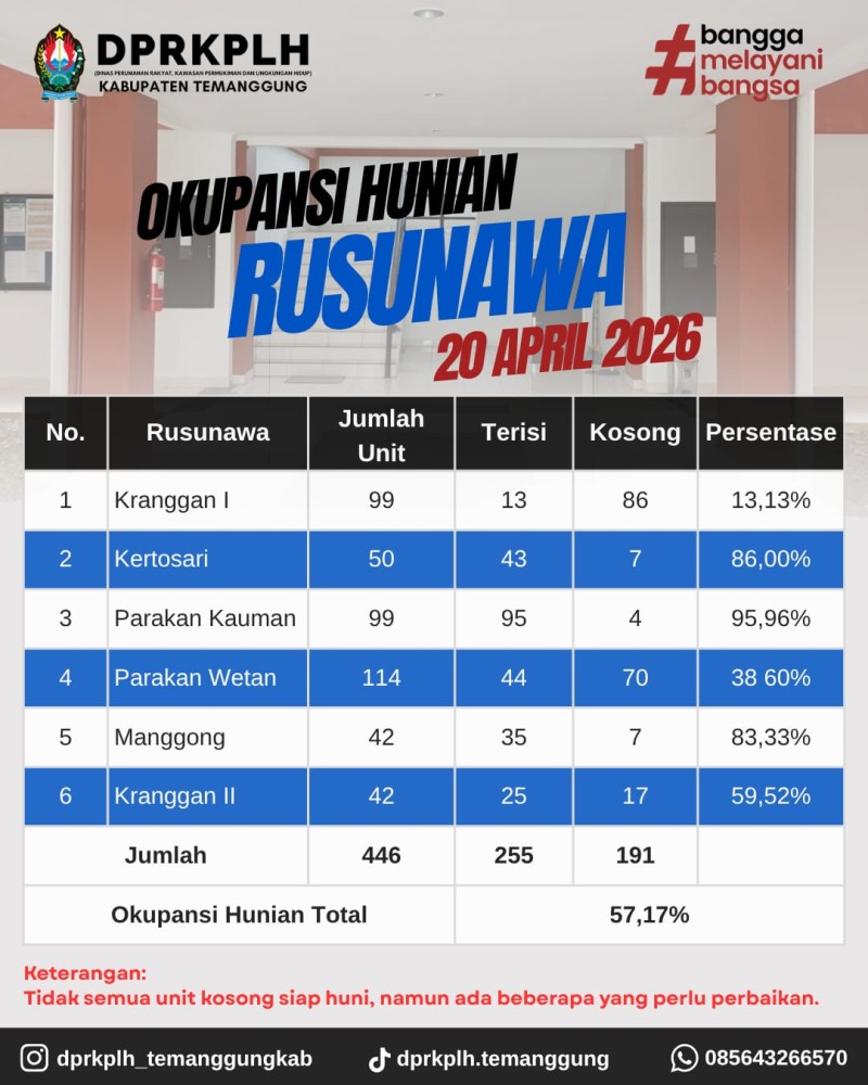 Berita Kategori: Smart Government (Pemerintah Cerdas) Bidang Tata Lingkungan Senin, 20/04/2026 16:45 0 DPRKPLH Temanggung Zoom Meeting Sharing Session ProKlim Jawa Tengah Selengkapnya Kategori: Smart Government (Pemerintah Cerdas) Bidang Tata Lingkungan Senin, 20/04/2026 16:43 0 Wajah Asri Jl. Suyoto: Kerja Nyata Petugas Pertamanan RTH Selengkapnya Kategori: Smart Government (Pemerintah Cerdas) UPT Senin, 20/04/2026 15:00 0 Memastikan Akurasi Titrasi: Standardisasi Natrium Tiosulfat di UPT Laboratorium Lingkungan DPRKPLH Temanggung Selengkapnya Kategori: Smart Government (Pemerintah Cerdas) Sekretariat Senin, 20/04/2026 14:58 0 UPT Laboratorium DPRKPLH Lakukan Standardisasi Larutan Standar Oksidan Selengkapnya Kategori: Smart Government (Pemerintah Cerdas) Bidang Perumahan Rakyat dan Kawasan Permukiman Senin, 20/04/2026 14:54 0 Sinkronisasi Laporan Mingguan Tenaga Fasilitator Lapangan Bidang Perkim 2026 Selengkapnya Kategori: Smart Government (Pemerintah Cerdas) Bidang Perumahan Rakyat dan Kawasan Permukiman Senin, 20/04/2026 14:52 0 Koordinasi Teknis dan Konsultasi Site Plan Perumahan Tahun 2026 Selengkapnya Kategori: Smart Government (Pemerintah Cerdas) Bidang Perumahan Rakyat dan Kawasan Permukiman Senin, 20/04/2026 14:51 0 Rapat Penjelasan Teknis Aplikasi E-SPM bagi Bidang Perumahan Rakyat Selengkapnya Kategori: Smart Branding (Merek Cerdas) Bidang Kebersihan dan Pengelolaan Persampahan Senin, 20/04/2026 14:45 0 Pemeliharaan Armada Sampah Truk oleh tim bengkel DPRKPLH Temanggung Selengkapnya Kategori: Smart Government (Pemerintah Cerdas) Bidang Kebersihan dan Pengelolaan Persampahan Senin, 20/04/2026 14:41 0 Sosialiasi Perda Pajak dan Retribusi Daerah di Kel. Walitelon Selatan Selengkapnya Kategori: Smart Government (Pemerintah Cerdas) Bidang Kebersihan dan Pengelolaan Persampahan Senin, 20/04/2026 14:40 0 Koordinasi Pengelolaan Persampahan di Desa Soropadan Kecamatan Pringsurat Selengkapnya Kategori: Smart Government (Pemerintah Cerdas) UPT Senin, 20/04/2026 14:39 0 Verifikasi dan Wawancara Calon Penghuni Rusunawa Selengkapnya Kategori: Smart Government (Pemerintah Cerdas) UPT Senin, 20/04/2026 14:37 0 Update Okupansi Hunian Rusunawa Kabupaten Temanggung – Per 20 April 2026 ????????? Selengkapnya FirstPrev34567NextLast