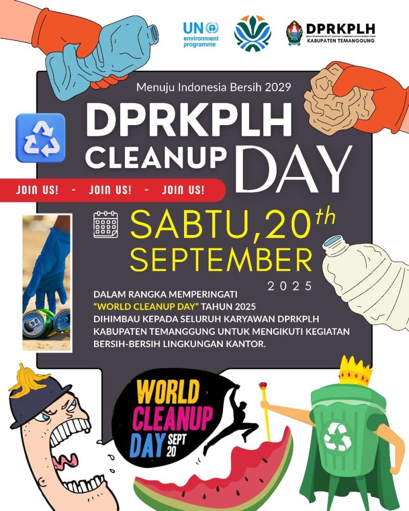 Kategori Smart Environtment (Lingkungan Cerdas) Kategori: Smart Environtment (Lingkungan Cerdas) UPT 26 Sep 2025 09:11:00 33 Pelayanan Sedot Lum[ur Tinja Oleh TPA-IPLT Sanggrahan Kabupaten Temanggung Selengkapnya Kategori: Smart Environtment (Lingkungan Cerdas) Bidang Kebersihan dan Pengelolaan Persampahan 20 Sep 2025 11:44:00 32 DPRKPLH Melaksanakan Kegiatan Aksi Gotong Royong Peringatan World Cleanup Day (WCD) INDONESIA Kabupaten Temanggung Tahun 2025 Selengkapnya Kategori: Smart Environtment (Lingkungan Cerdas) Bidang Kebersihan dan Pengelolaan Persampahan 20 Sep 2025 08:36:00 24 World Cleanup Day 2025 Selengkapnya Kategori: Smart Environtment (Lingkungan Cerdas) Bidang Kebersihan dan Pengelolaan Persampahan 18 Sep 2025 14:40:00 26 DPRKPLH Mendukung Kegiatan WCD Indonesia Tahun 2025 Selengkapnya Kategori: Smart Environtment (Lingkungan Cerdas) Sekretariat 05 Jun 2025 16:00:00 64 DPRKPLH Kab. Temanggung Melakukan Apel Bersama dan Gerakan Aksi Bersih Sampah Plastik Dipimpin Oleh Ibu Wakil Bupati Temanggung Selengkapnya Kategori: Smart Environtment (Lingkungan Cerdas) Sekretariat 02 Mei 2025 08:10:00 98 DPRKPLH Temanggung Selamat Hari Pendidikan Nasional Selengkapnya Kategori: Smart Environtment (Lingkungan Cerdas) Sekretariat 25 Apr 2025 10:56:00 94 Karyawan dan Karyawati DPRKPLH Kab. Temanggung Mengikuti Kegiatan Santapan Rohani (SANROH) di Aula Adipura. Selengkapnya Kategori: Smart Environtment (Lingkungan Cerdas) Sekretariat 22 Mar 2025 13:21:00 105 TPA-IPLT Sanggrahan Temanggung Melaksanakan Pelayanan Sedot Lumpur Tinja ke Masyarakat Selengkapnya Kategori: Smart Environtment (Lingkungan Cerdas) Sekretariat 16 Mar 2025 15:15:00 114 Pelayanan Penyedotan Lumpur Tinja Oleh Petugas TPA-IPLT Selengkapnya Kategori: Smart Environtment (Lingkungan Cerdas) Sekretariat 11 Feb 2025 16:09:00 132 UPT TPA-IPLT Sanggrahan Temanggung Melakukan Pelayanan Penyedotan Lumpur Tinja Kepada Rumah Tangga Selengkapnya Kategori: Smart Environtment (Lingkungan Cerdas) Sekretariat 16 Jan 2025 18:30:00 115 UPT TPA-IPLT Sanggrahan Temanggung Melakukan Pelayanan Penyedotan Lumpur Tinja Selengkapnya Kategori: Smart Environtment (Lingkungan Cerdas) Sekretariat 10 Jan 2025 09:00:00 111 Hari Gerakan Menanam Satu Juta Pohon Selengkapnya 123NextLast