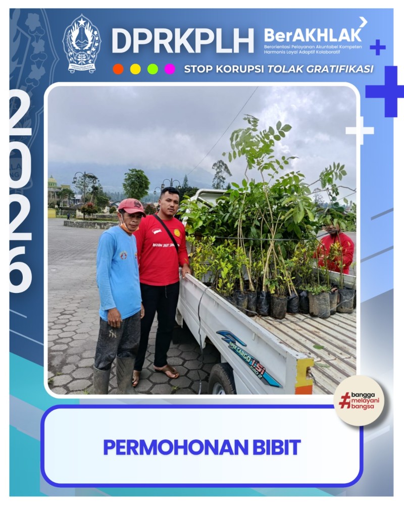 Pada hari Senin, 30 Maret 2026, Tim DPRKPLH menerima permohonan bibit dalam rangka kegiatan HUT SAR Macan Gunung Prahu, Kecamatan Tretep, untuk mendukung kegiatan kampanye hijau. Permohonan ini merupakan bagian dari upaya mendorong partisipasi masyarakat dalam kegiatan penghijauan dan pelestarian lingkungan.